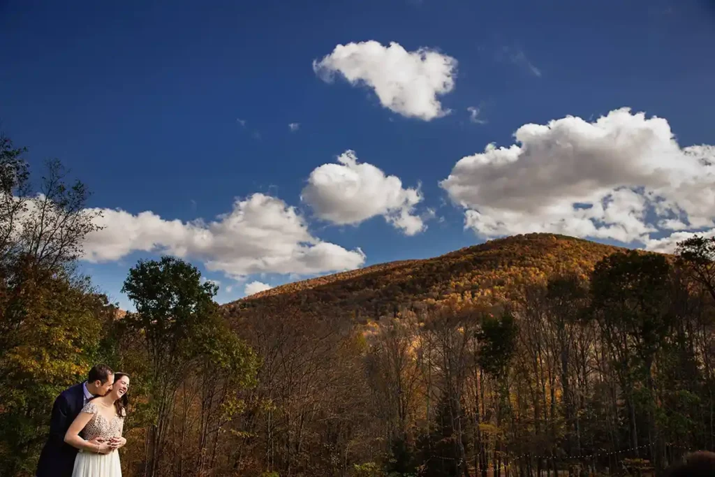 If you want fall foliage, the first two weeks of October are unbeatable in the Roxbury area—literally peak season. Cator Roundtop Mountain, right across the valley, offers a kaleidoscope of fall colors. This is when we host our last few weddings.